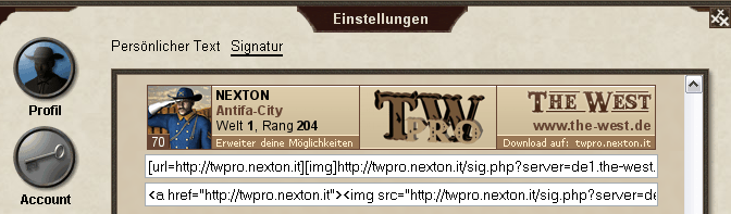 Wenn Ihr zur Verbreitung von TW Pro beitragen wollt, befindet sich in den Einstellungen unter Signatur ein persönliches Banner, welches man genauso wie die anderen benutzen kann.